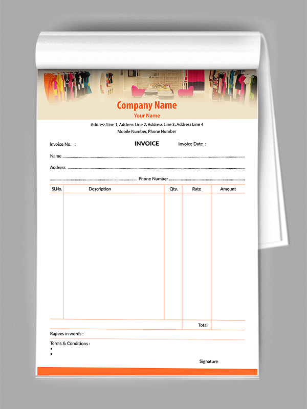 • Available Sizes: A4, A5, A6, DL – ideal for custom bill books.
